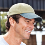 Adams Optimum Khaki-Crown With Contrast Bill. 100% cotton twill construction, Tuck away leather strap with antique buckle, unstructured, six panel, low profile, Cool-Crown mesh lining, contrasting colored bill and button, with a khaki crown.